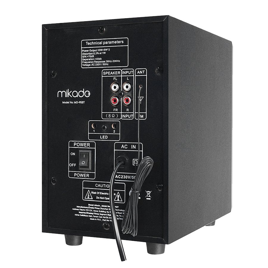Zvučnici 2.1 gaming Mikado MD-95BT 2 1 20W Black Multimedia FM/BT/SD/USB Speaker, 39525